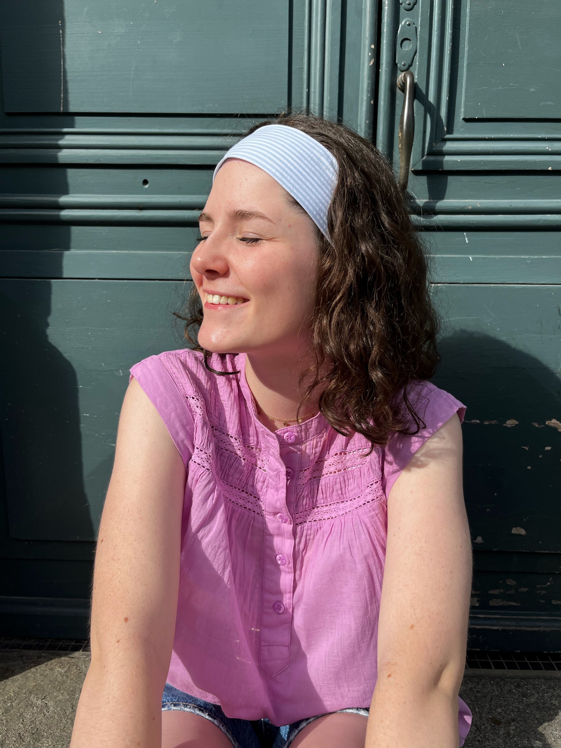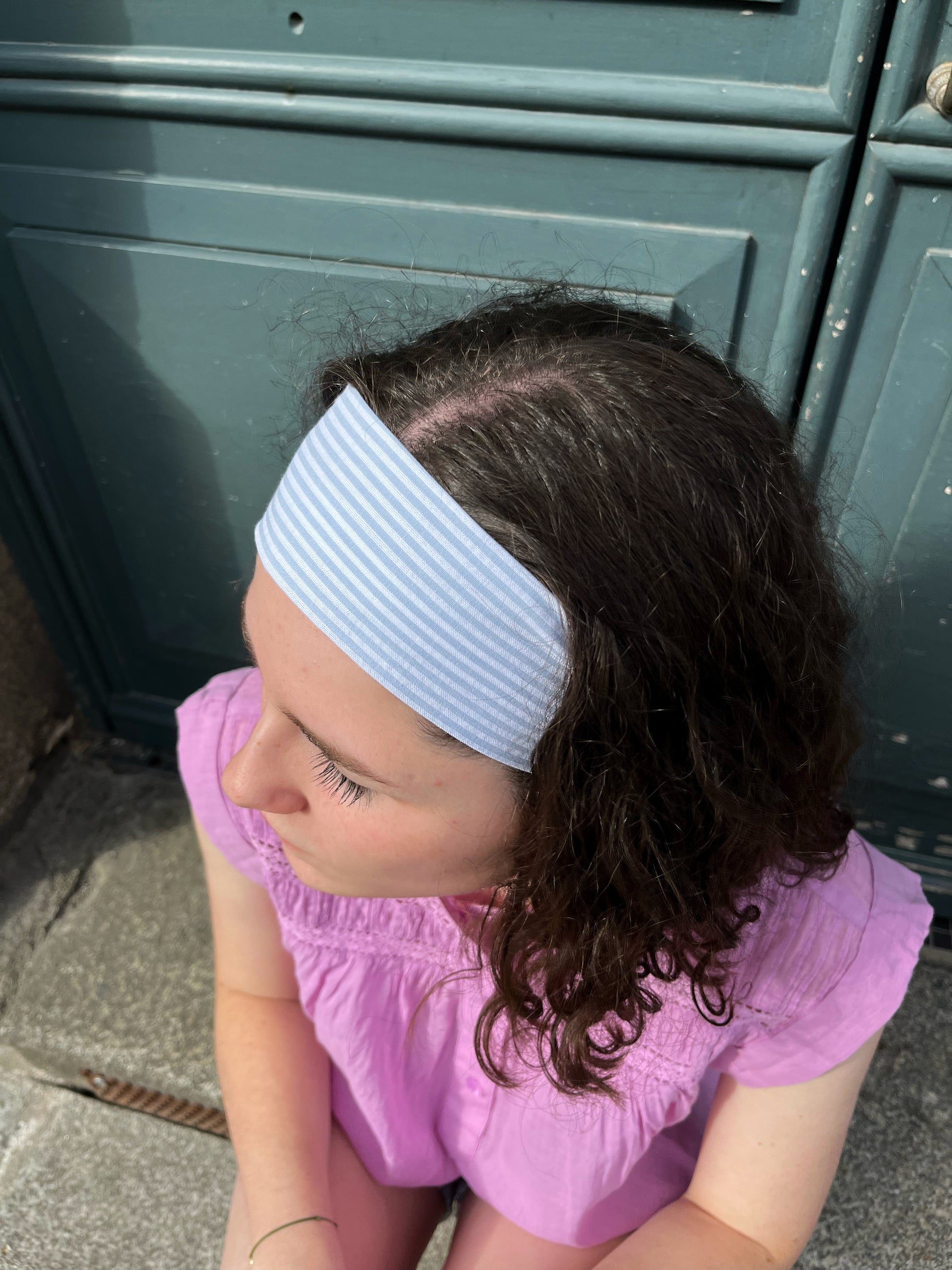 - Bandeau Madeleine fait main rayé bleu et blanc