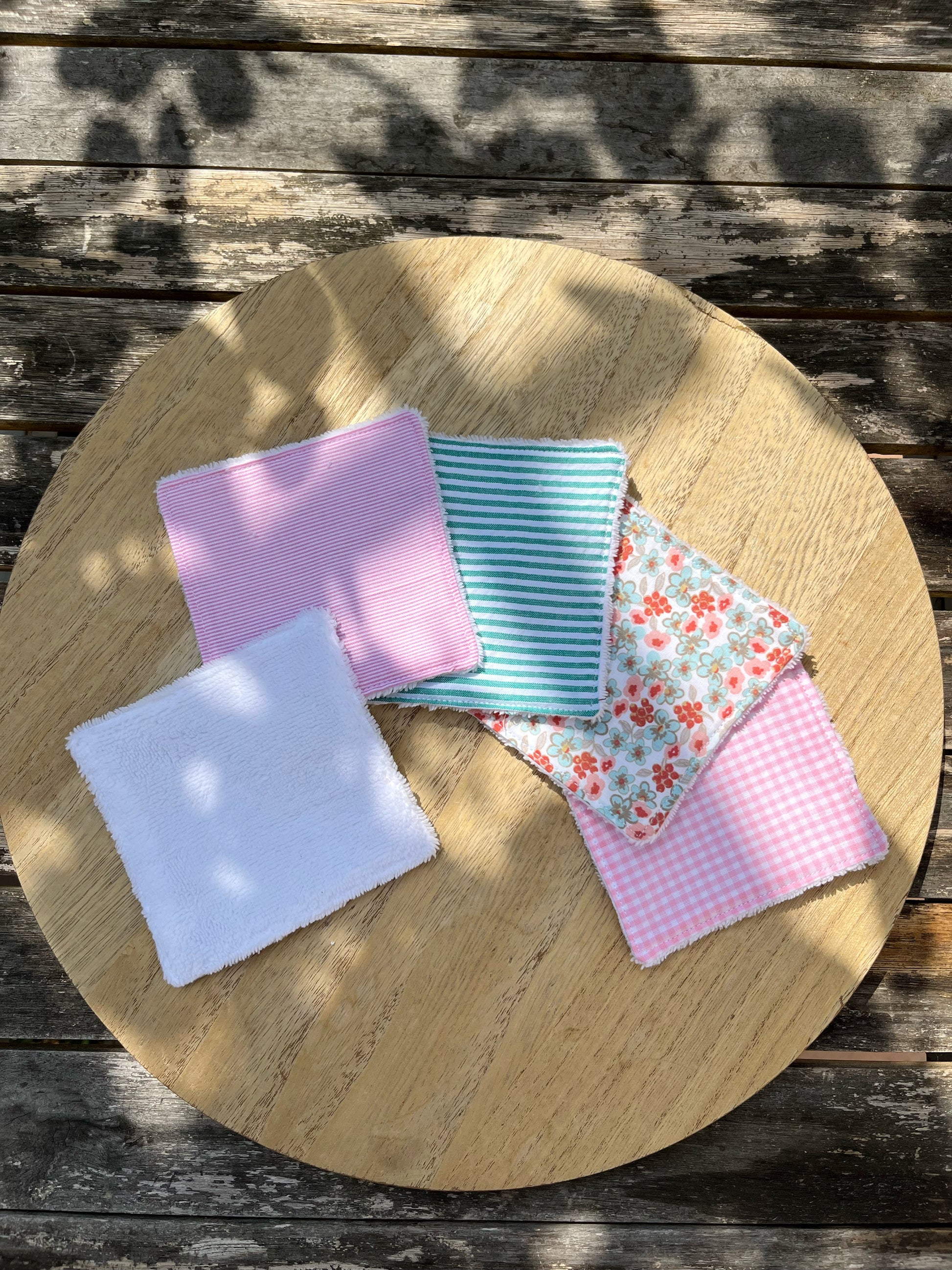- lot de 5 cotons réutilisables démaquillants dépareillés