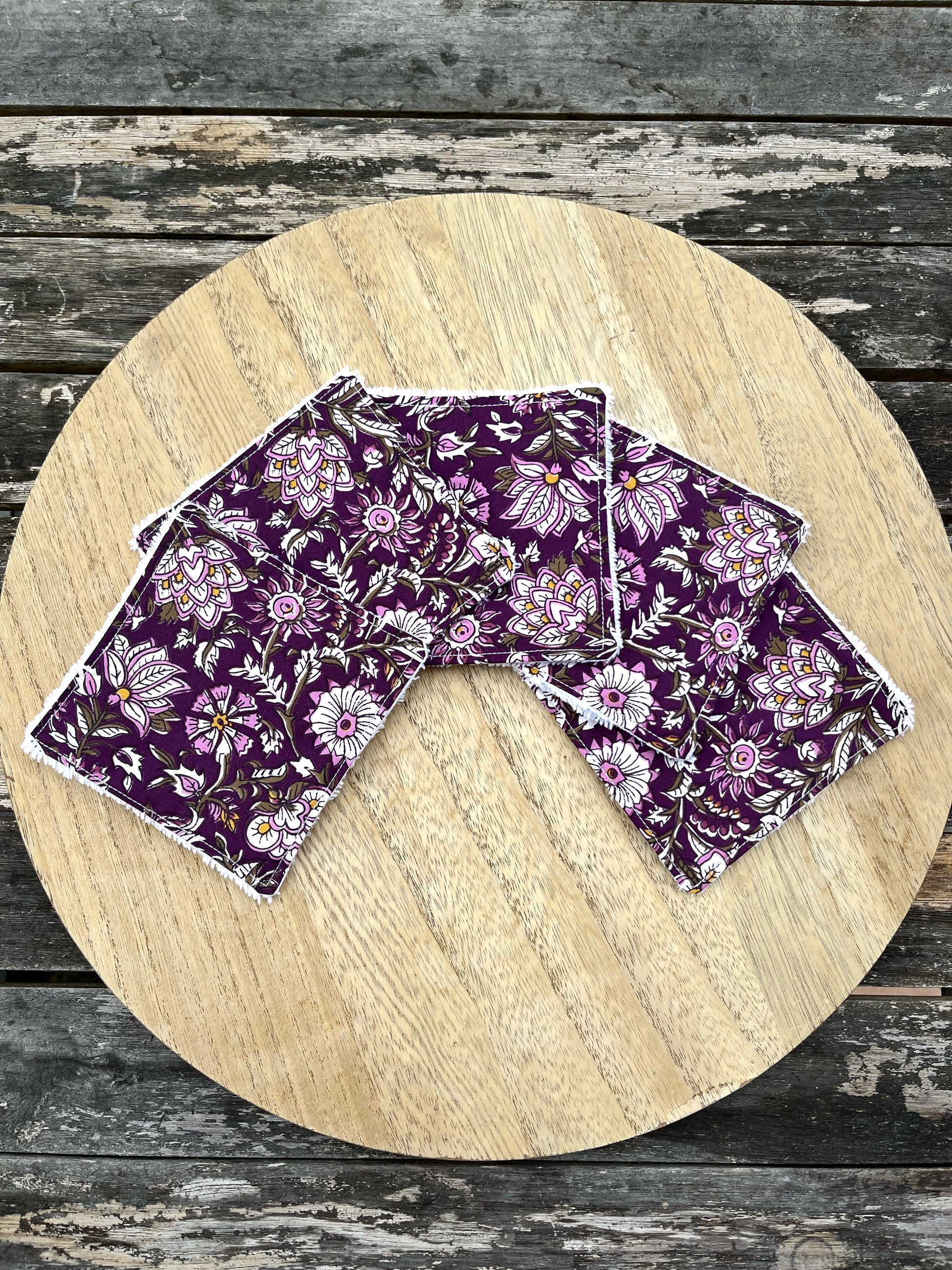 - lot de 5 cotons démaquillants réutilisables fleuris violets